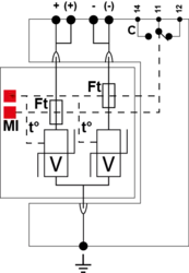 Por terminales de tornillos : 1.5-10 mm² (conductores activos) y 2.5-25 mm² (tierra)